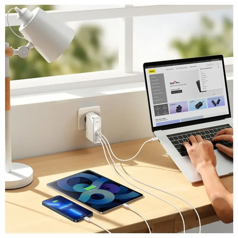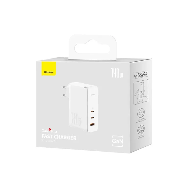 کلگی شارژر فست باسئوس Baseus مدل GaN5 Pro 140W با کابل CCGP100202 سفید