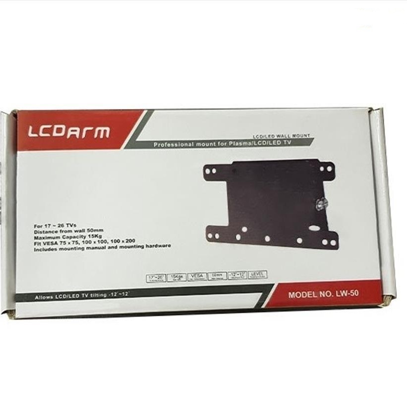 | فاصله سوارخهای محل نصب LCD از یک دیگر | 75x75mm , 100x100mm , 100x200mm |